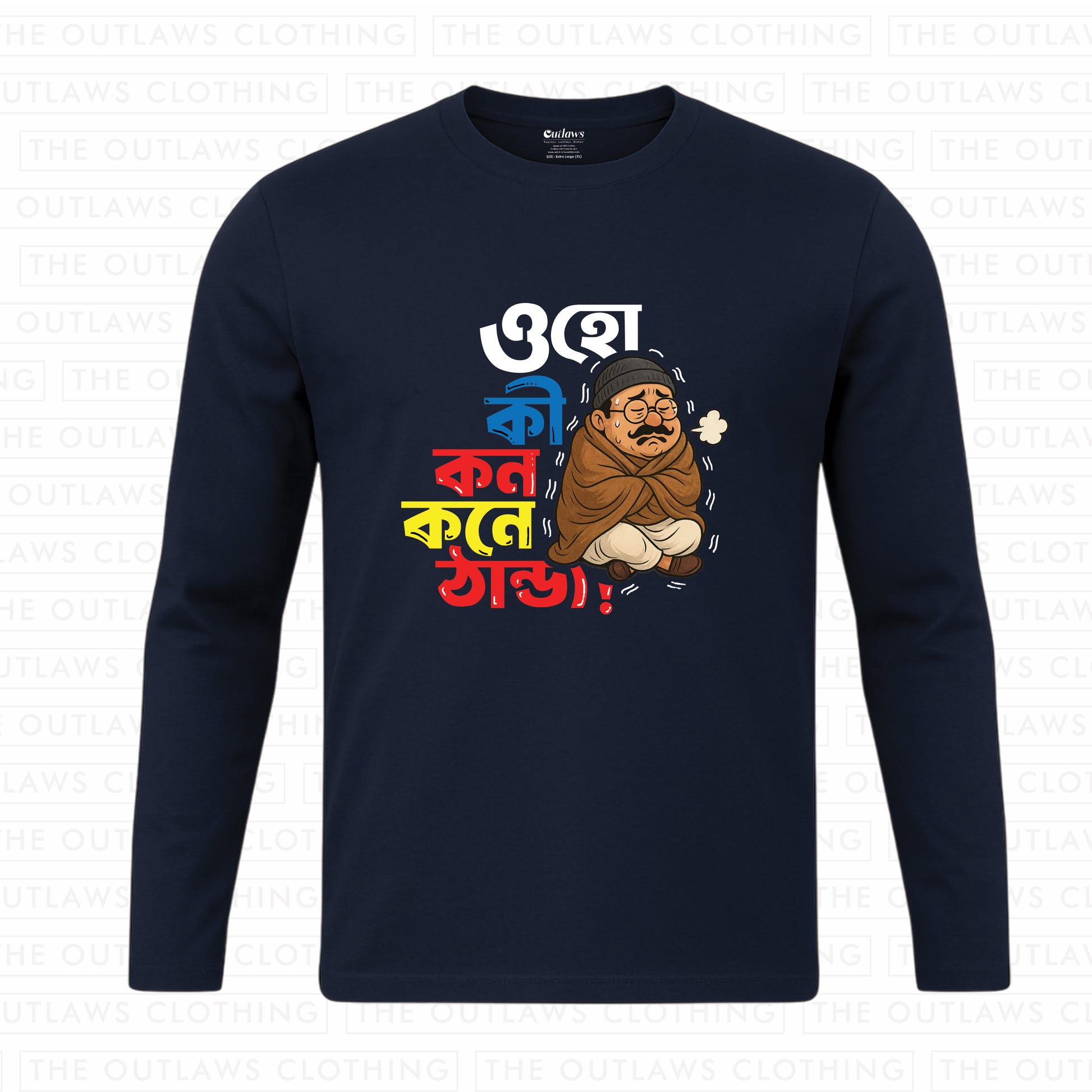 Product Title: ওহো, কী কনকনে ঠান্ডা Full Sleeve T-Shirt | 100% Bio-Washed Cotton | 180 GSM
